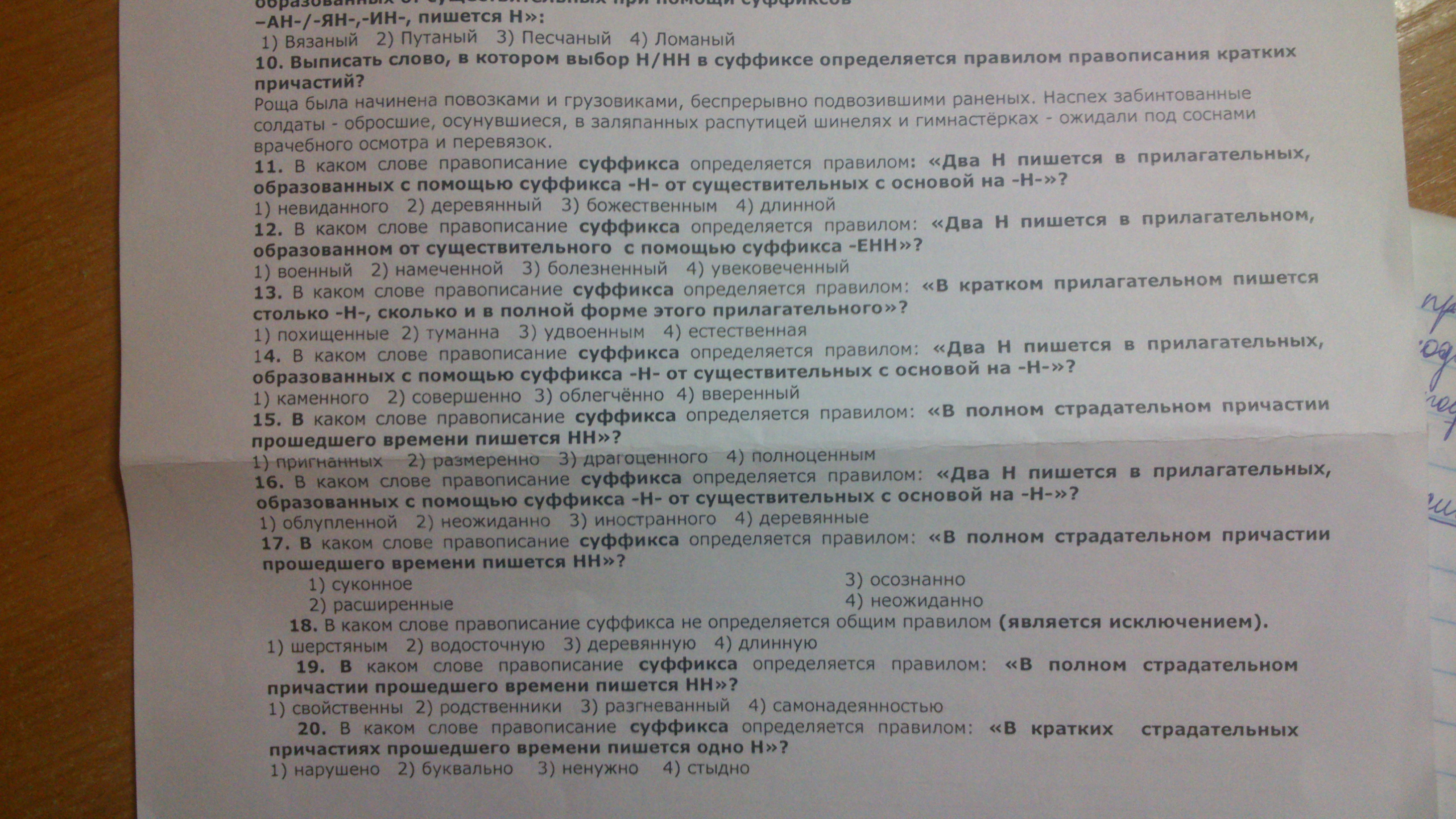 15. пригнанный. Это, вроде, единственное причастие. Окей, н.ф. - пригнать. А страдательные причастия пр.вр. образуются от н.ф.глаголов, если оно оканчивается на -ать(-ять) пишется нн. Если оканчивается на -ить, то суффикс енн. Есть ещё суфф. т, но его сложно объяснить.