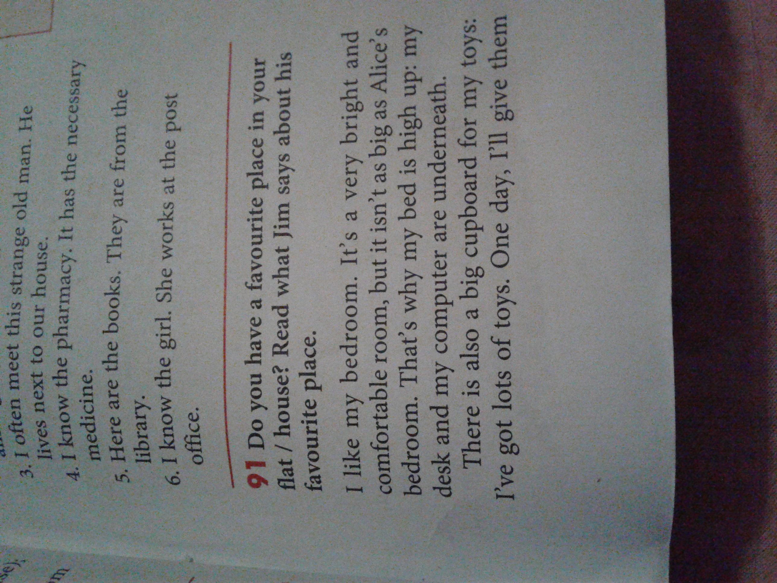 I have got a big and cosy room on the first floor of our house. There is a big window with lace curtains in it, so my room is full of light. I spend a great deal of my time in this room: I do my homework, listen to music, read books and chat with my friends via the Internet.