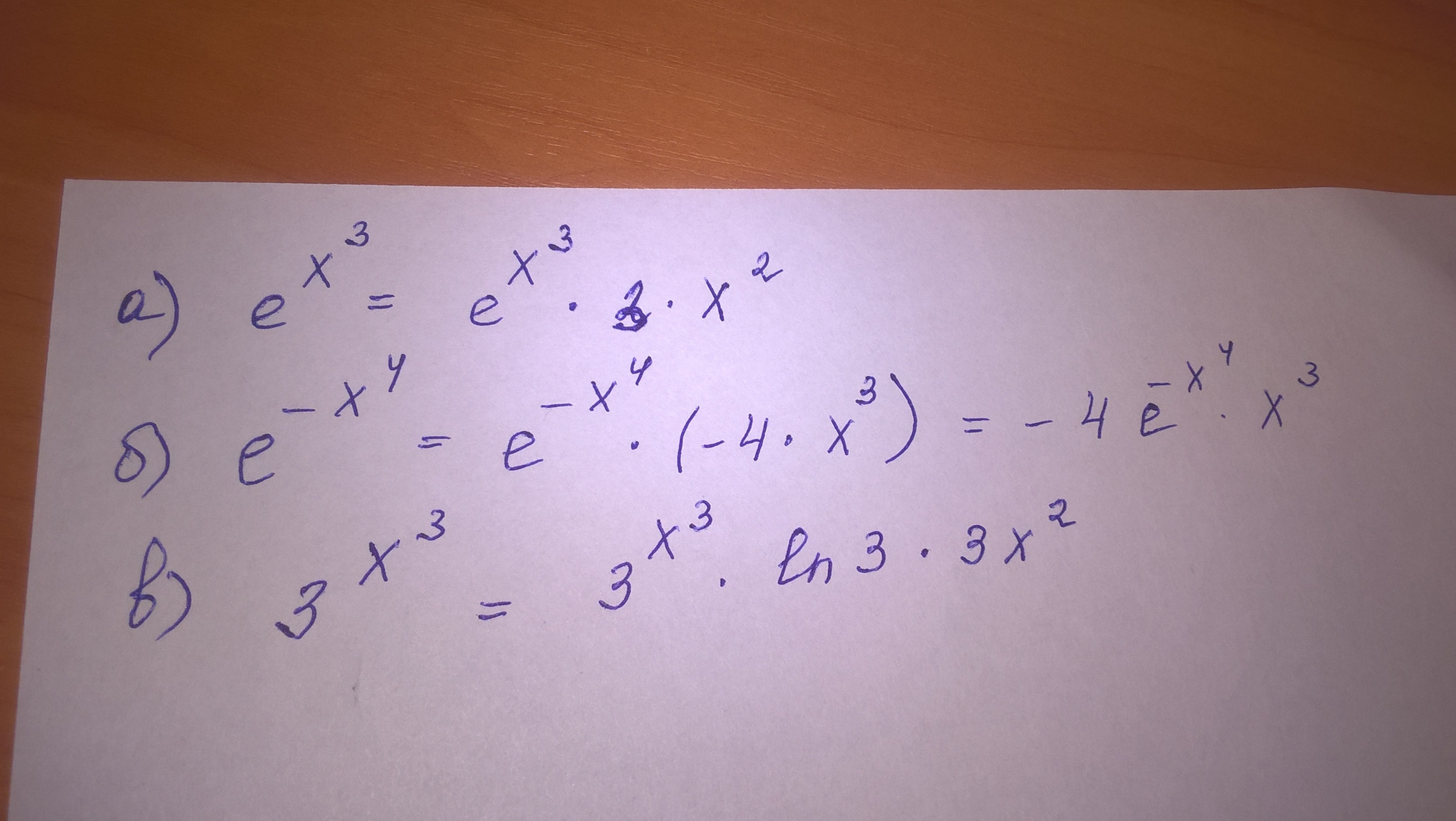 а) е^x3'=e (в степени х в третьей) * 3 * х (в третьей степени)
