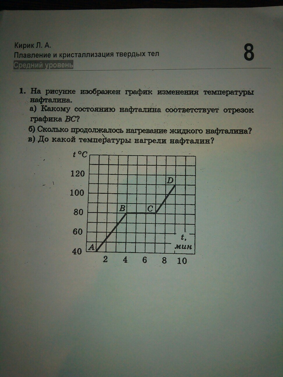 1)Отрезок BC соответствует плавлению, то есть переходу тела из кристаллического твёрдого состояния в жидкое