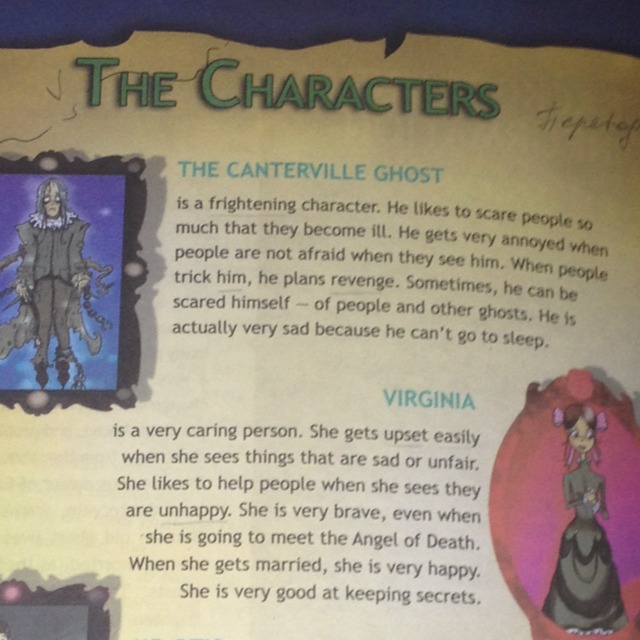 Кентервилльский призрак или кентрвилльское привидение — это пугающий персонаж. Он очень любит пугать людей, что они потом заболевают. Он очень раздражается, когда люди не пугаются, видя его. Когда люди обманывают его, он собирается мстить. Иногда, он может испугаться сам себя - из-за людей и других призраков. На самом деле он очень грустит, потому что не может пойти спать.