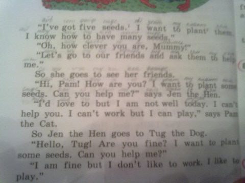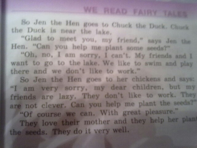 так курица джен пошла к цыплятам и сказала: извините мои дорогие, но мои друзья ленивые. им не нравится работать. они неудачники. может вы поможете посадить семена?
