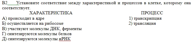 Установите соответствие между характеристикой и процессов в клетке, которому она соответствует.