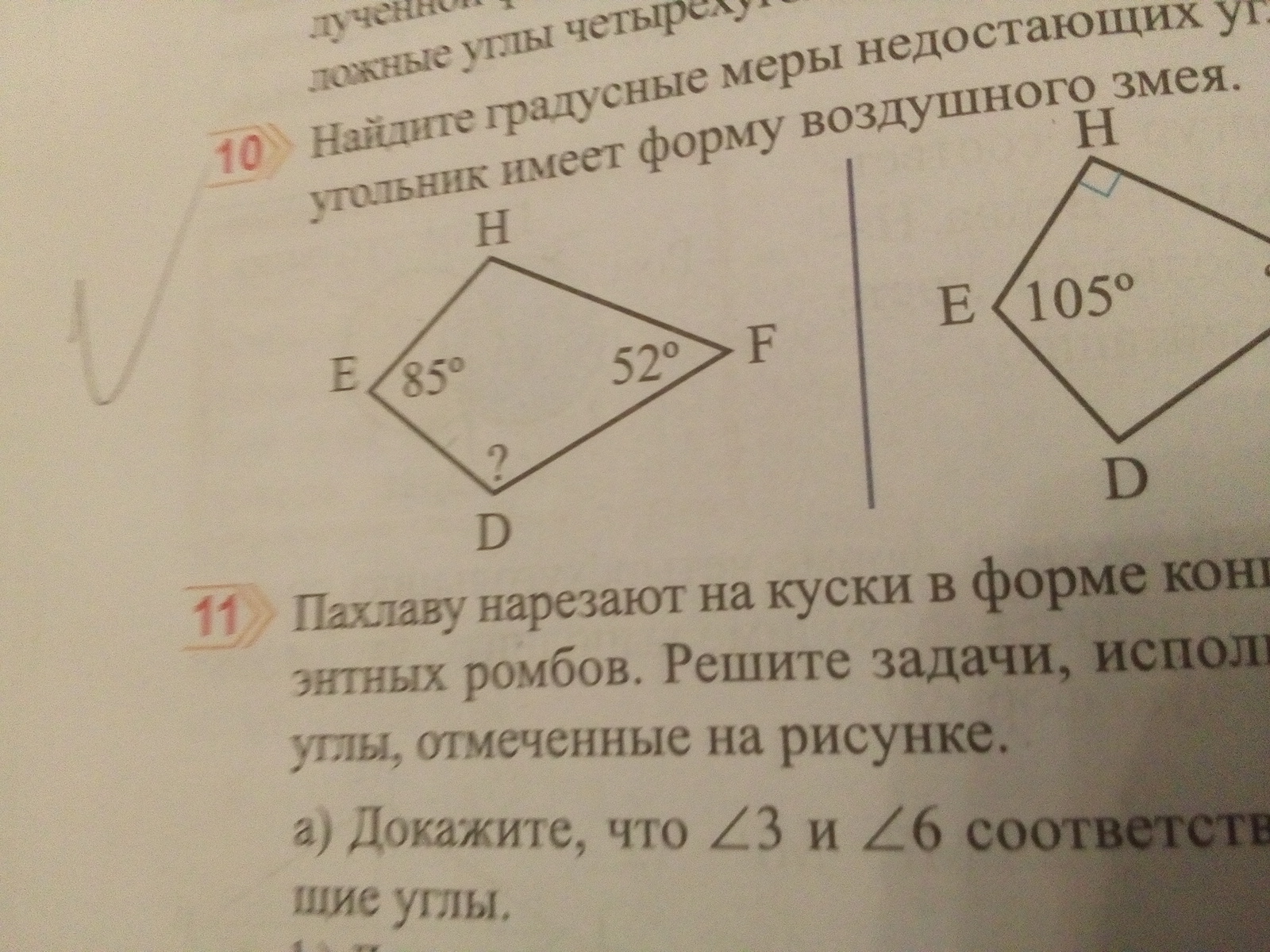 угол Д=углуН, поэтому 360-52-85=223. Теперь угол Д=223/2=111,5