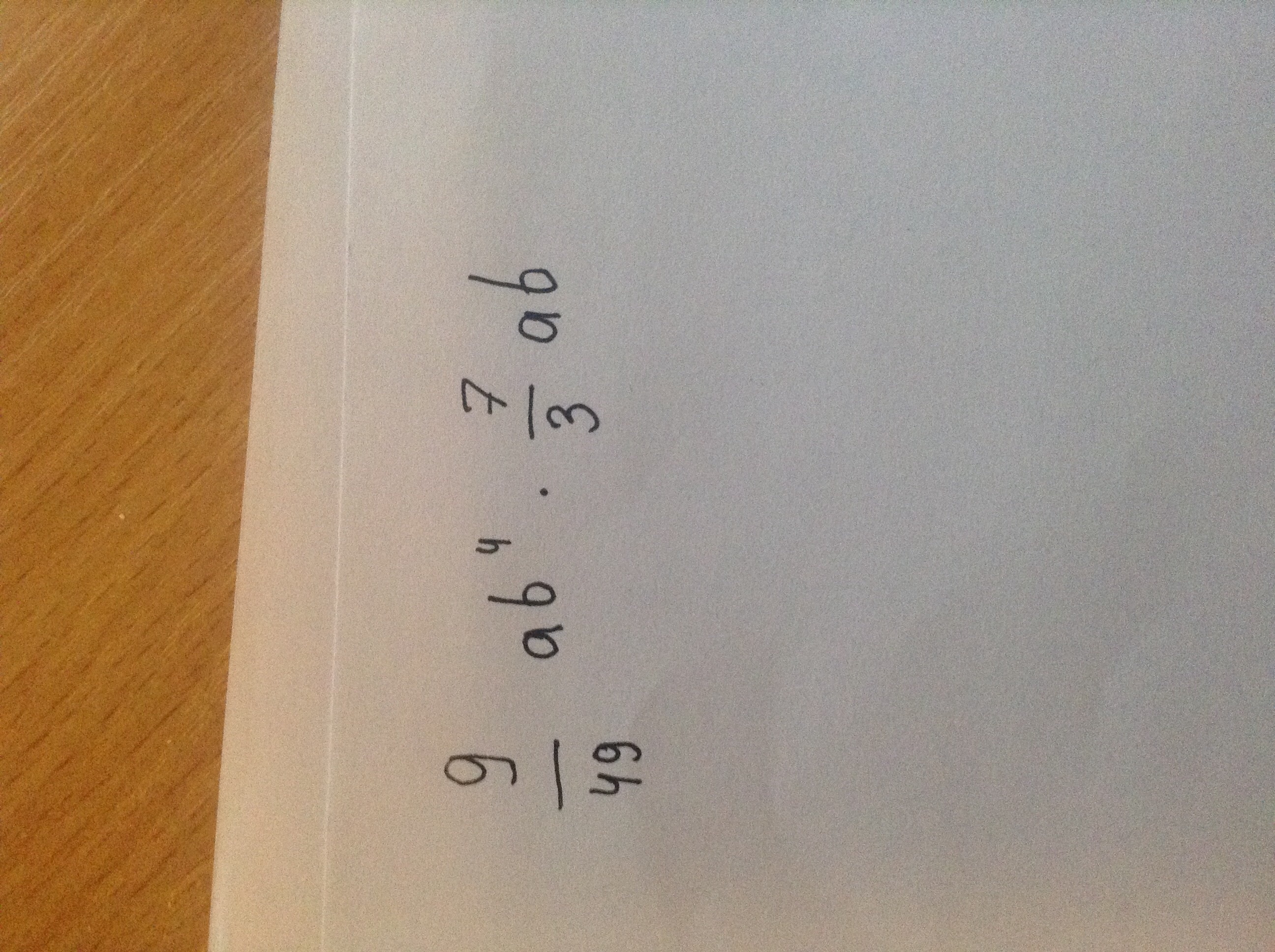 при умножении степени складываются ,поэтому получается 9/49 ab^4 × 7/3 ab девятка сокращается с тройкой и семь сокращается с 49 = 3/7 a^2b^5