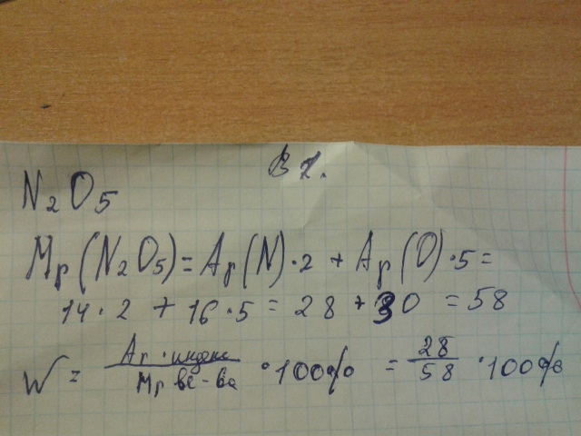 Mr(N205)= молярная масса оксидаAr(N)= 14 г/моль- атомная масса азотаw(N)=2*14/108=0.259 или 25.9 % -массовая доля азота