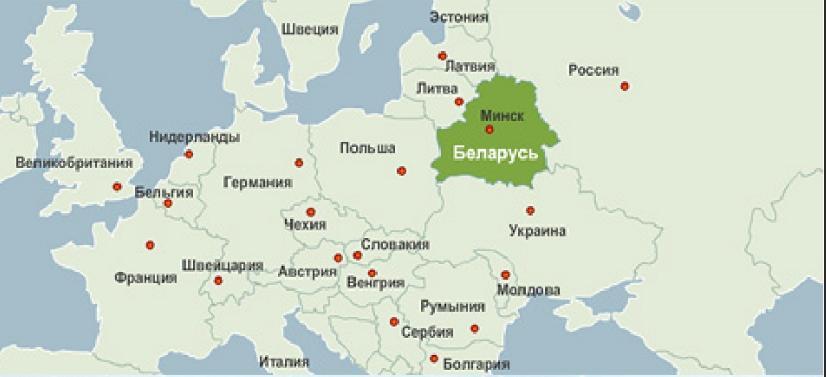 2 Граничит с Россией,Украиной,Польшей,Литвой и Латвией (довольно сильные в экономическом отношении государства,далеко от "горячих точек").