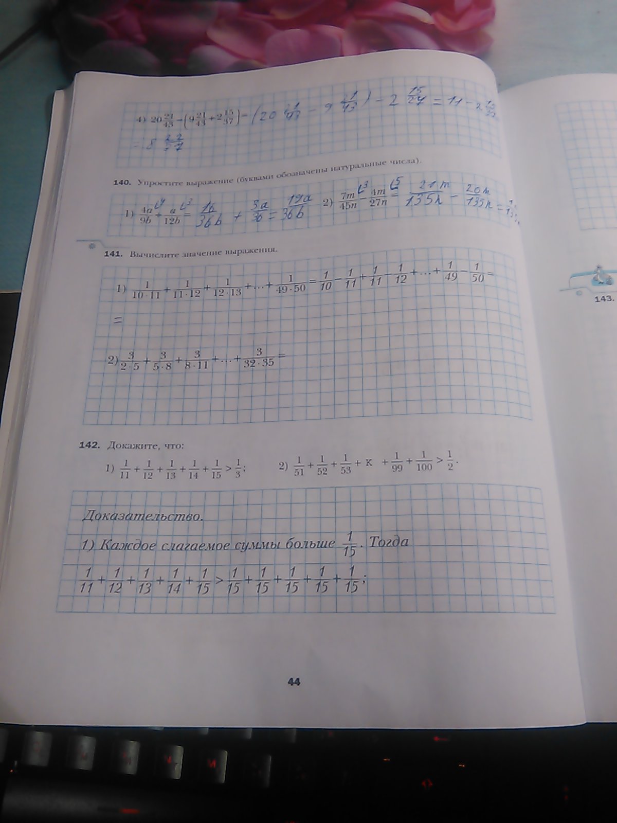 1) Все слагаемые,начиная со второго и до предпоследнего взаимноуничтожаются, значит остается 1/10-1/50= 5/50-1/50=49/50