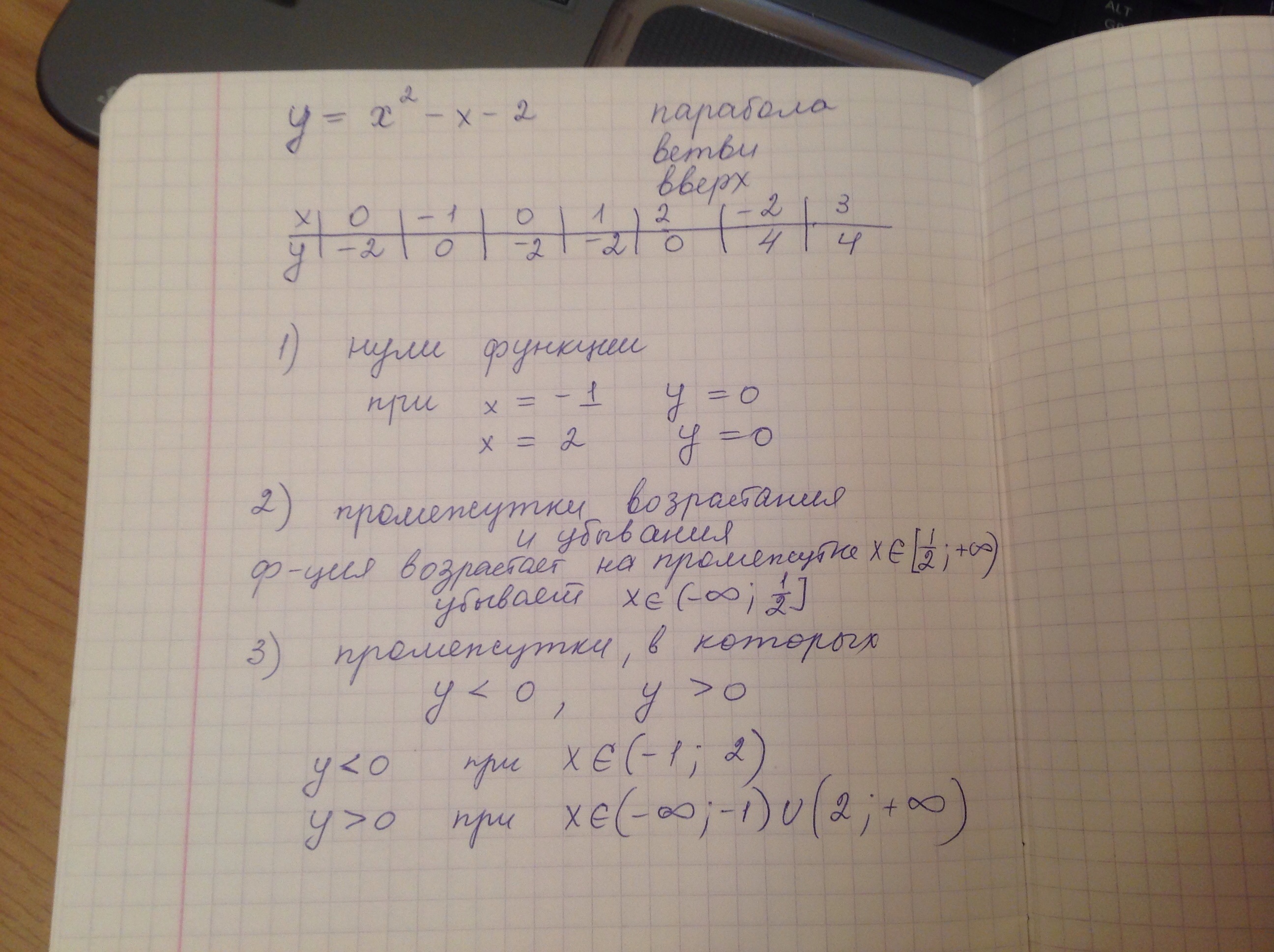 Постройте график функции y=x^2-x-2. Найдите по графику :