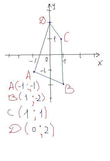 нужно нарисовать фигуру на координатной плоскости и записать вершины , нужно поставить точки и найти их координаты этих точек