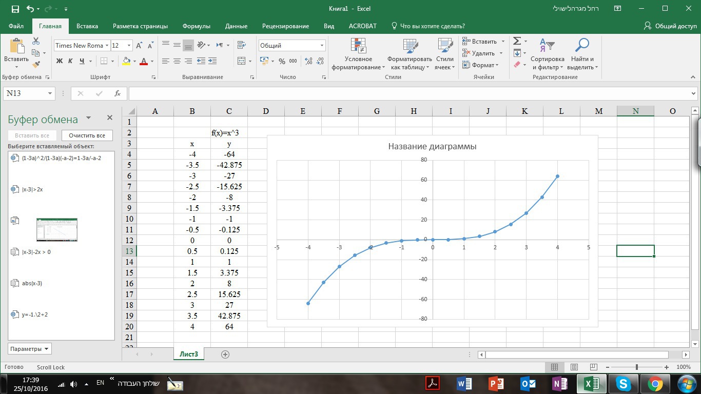 Построить график функции у=х3. Определите по графику значение аргумента, при котором значение функции равно -8.