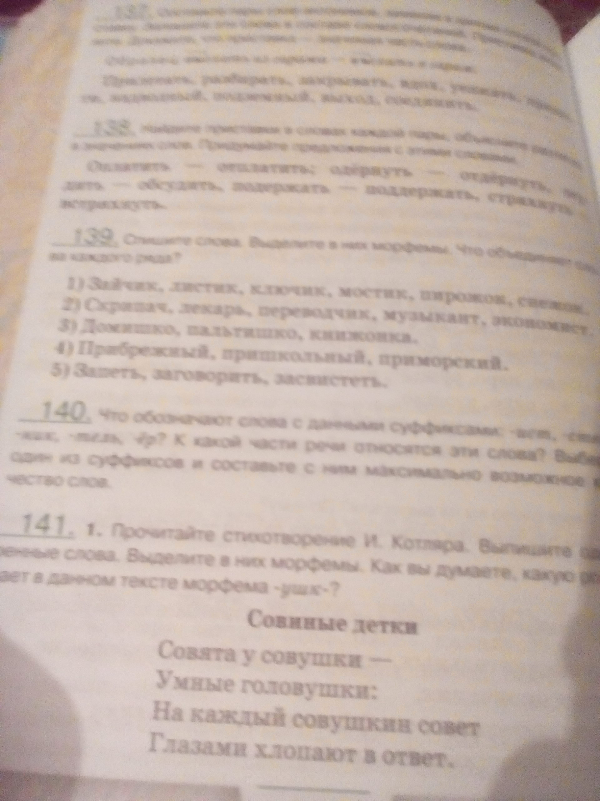 Выдилите морфемы . Что объеденяет слова каждого рода ? Задание 139 .