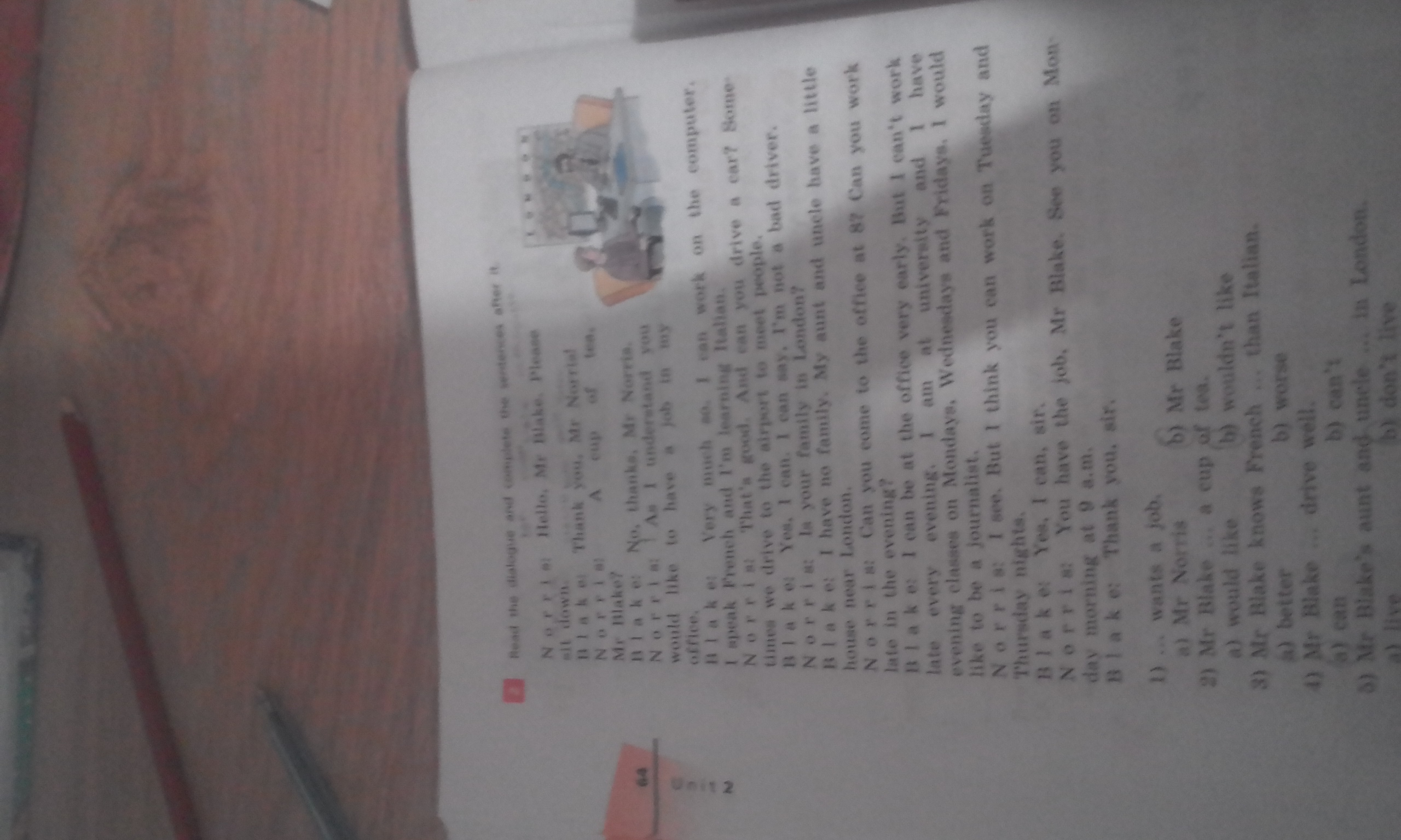 Б: Я могу приходить в офис очень рано, но не могу долго работать. Я учусь в университете и вечером у меня курсы по Понедельникам, средам и пятницам. Я хочу быть журналистом.