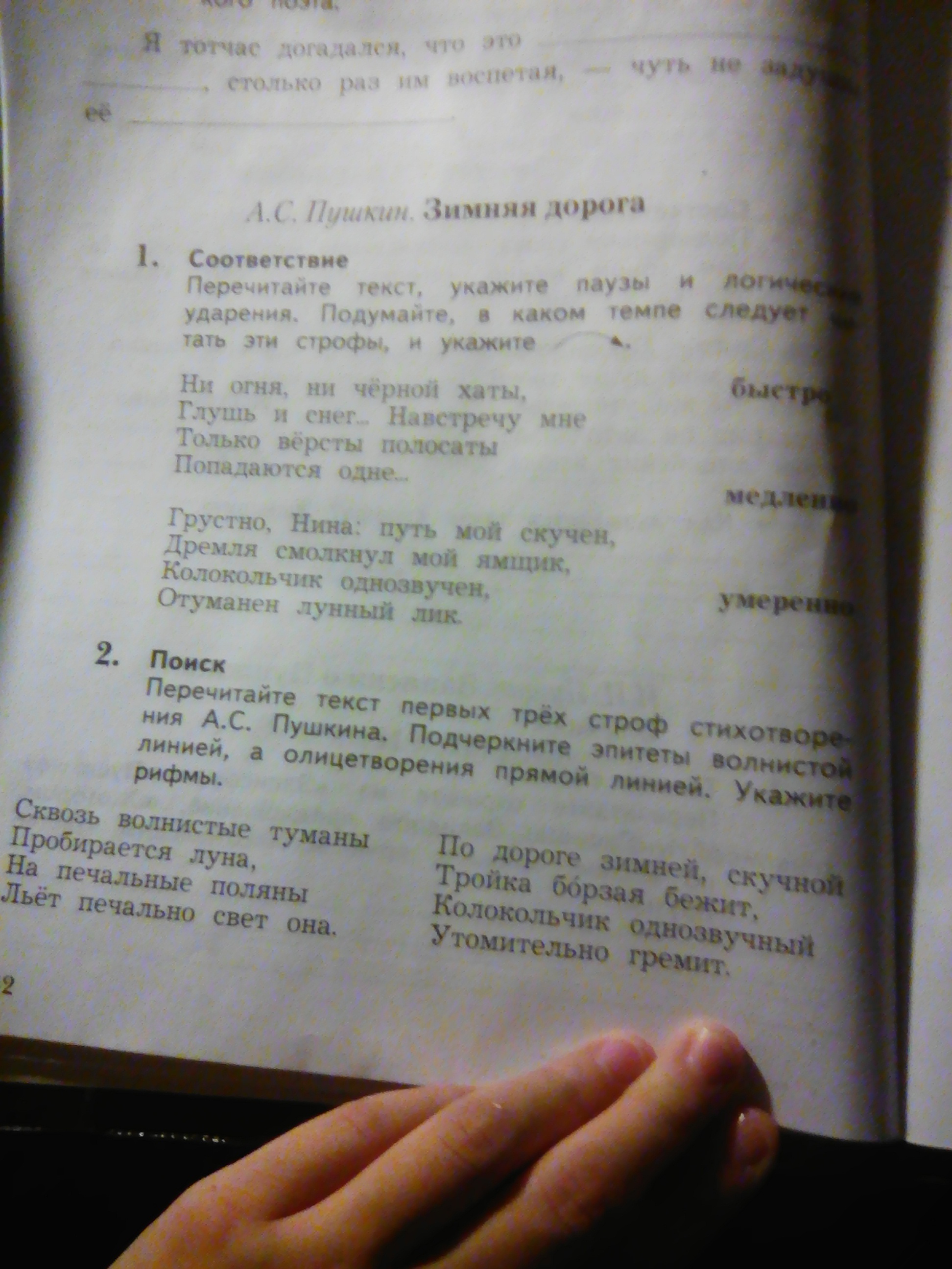 Второе Задание : олицетворения : Туманы, Луна, Поляны, Свет. Эпитеты : Волнистые, Печально, Печальные, Гремит, Однозвучный.