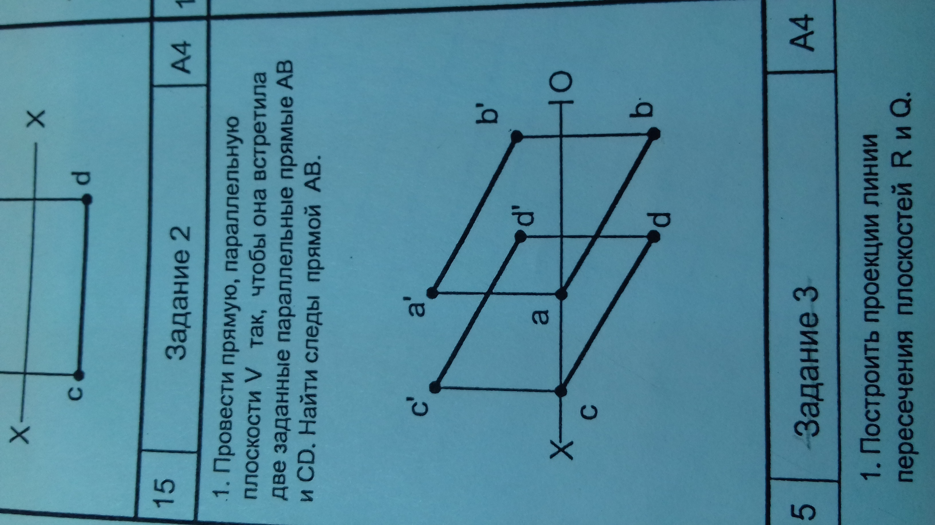 Провести прямую параллельную плоскости V, так чтобы она встретила две заданные параллельные прямые AB и CD. найти следы прямой AB.
