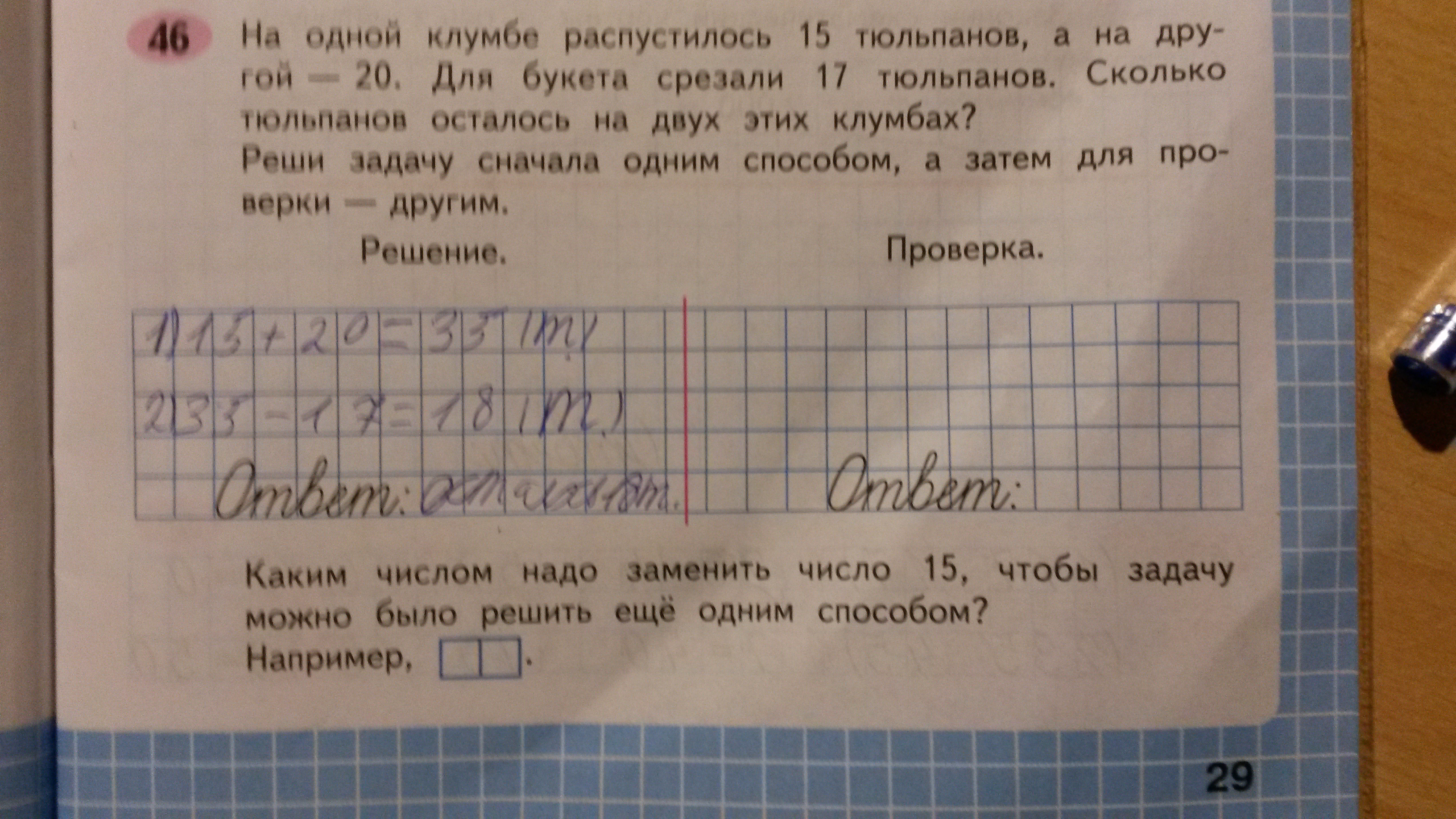 15 меньше 17 а 20 больше поэтому сорвали со 2 клумбы осталось 3 на 2 клумбе и 15 на 1 а всего осталось 18