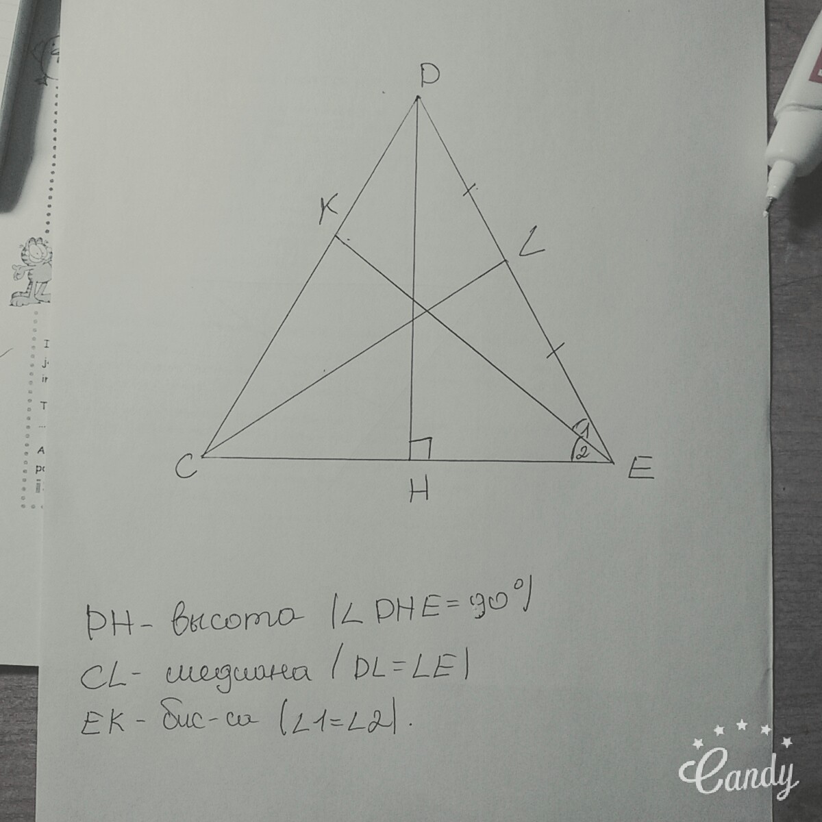вот, но сделай так, чтобы бис-са и медиана в одной точке пересекались, а то выглядит без пересечения ужасно.