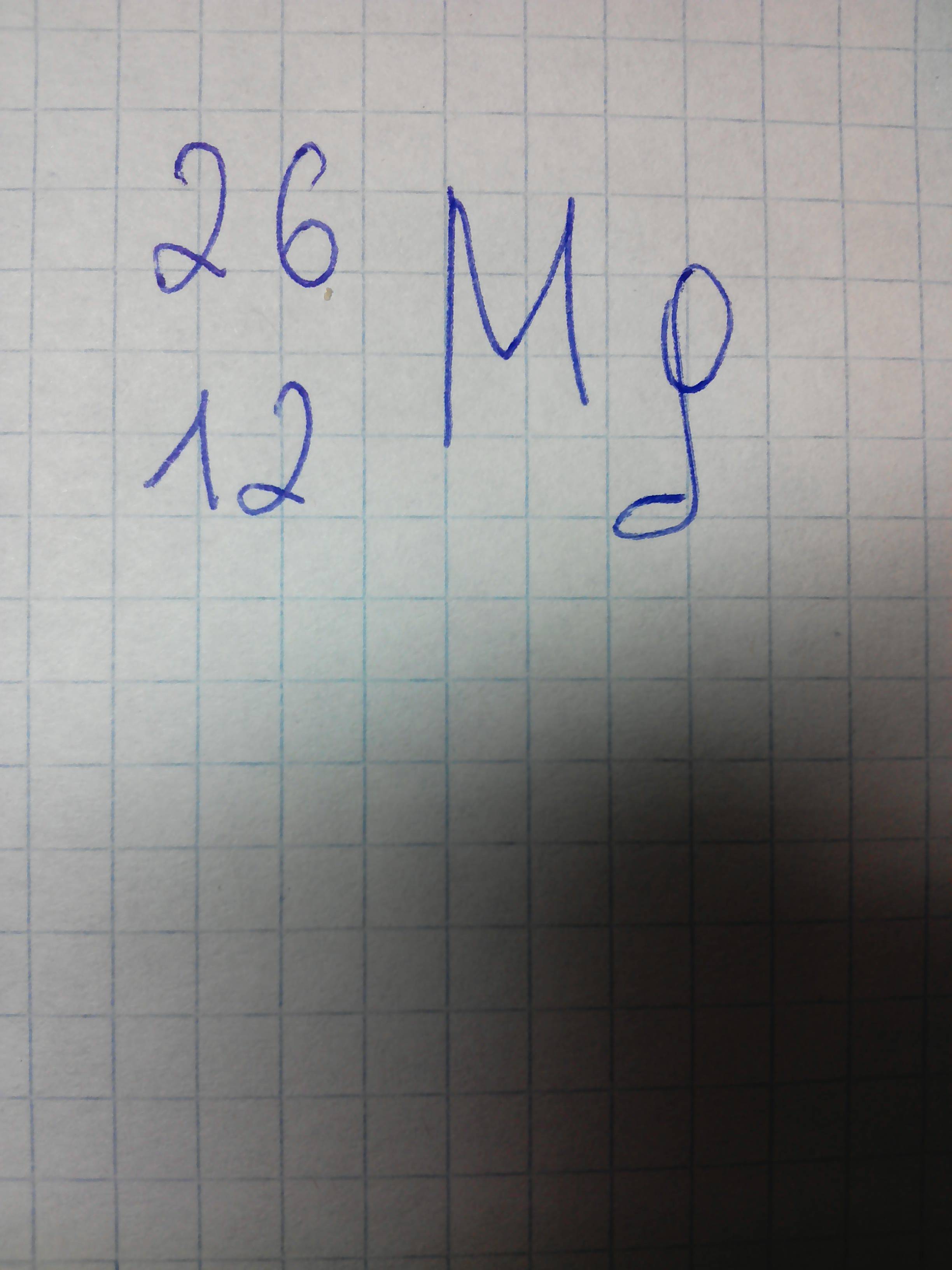 р+=12, е-=12, нейтроны :n0=26-12=14