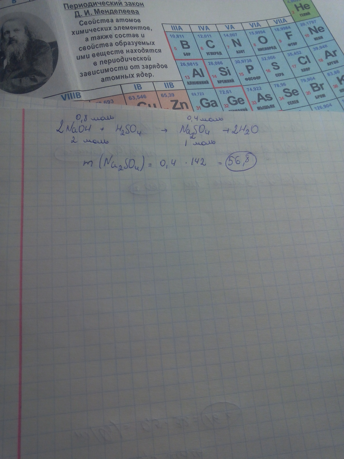 масса соли (в граммах) образовавшейся при взаимодействии натрий гидроксида химическим количеством 0,8 моль с серной кислотой равна:
