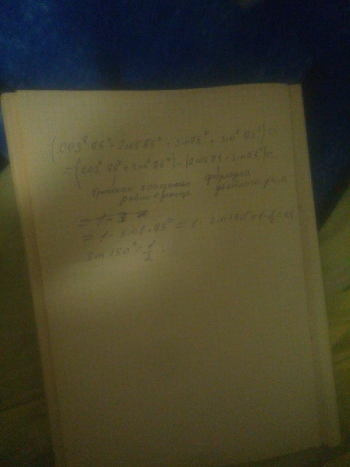 Помогите сосчитать : cos^2 75 градусов - 2* cos 75 градусов * sin 75 градусов + sin^2 75 градусов