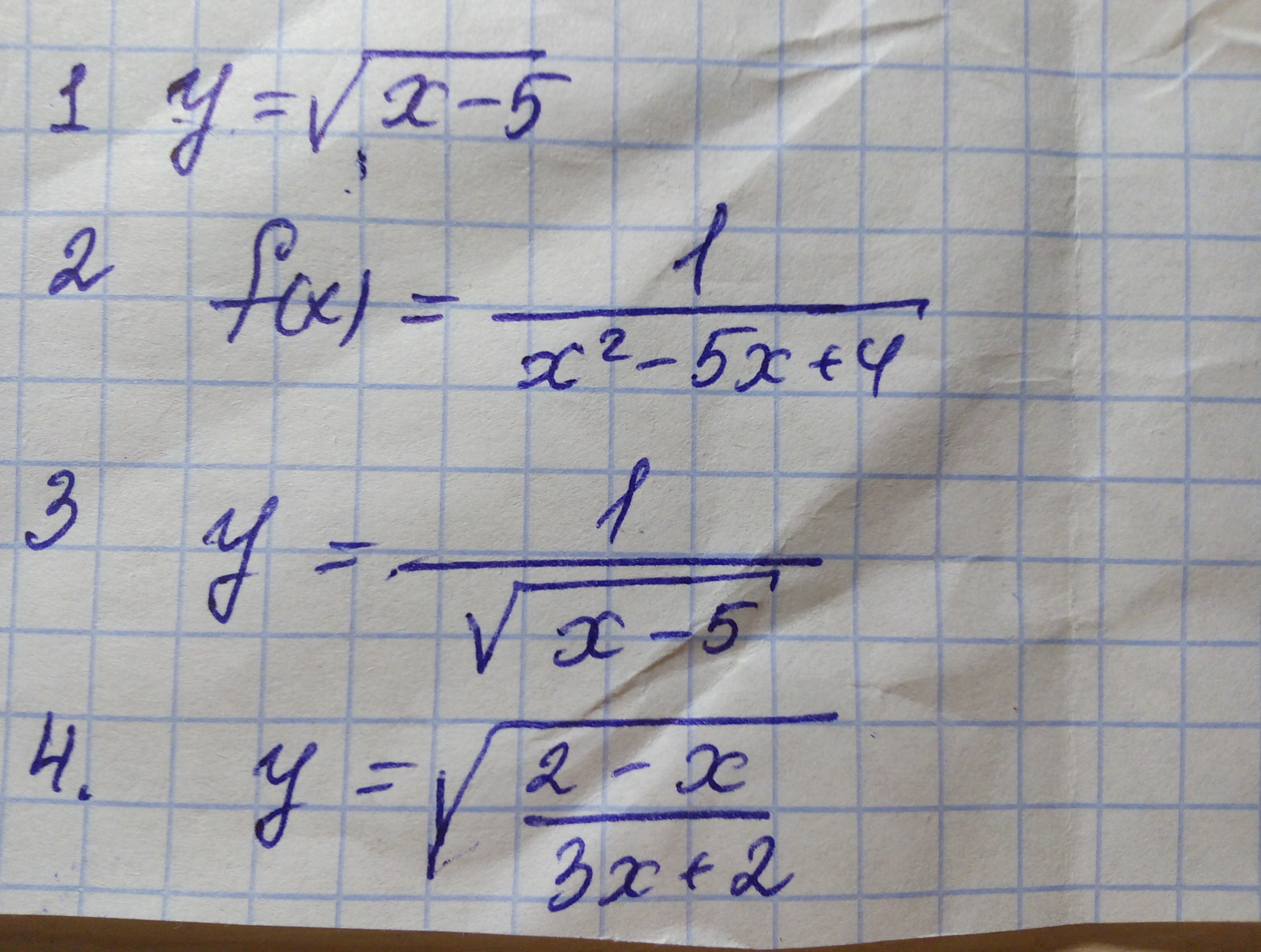 1) y=√(x-5)