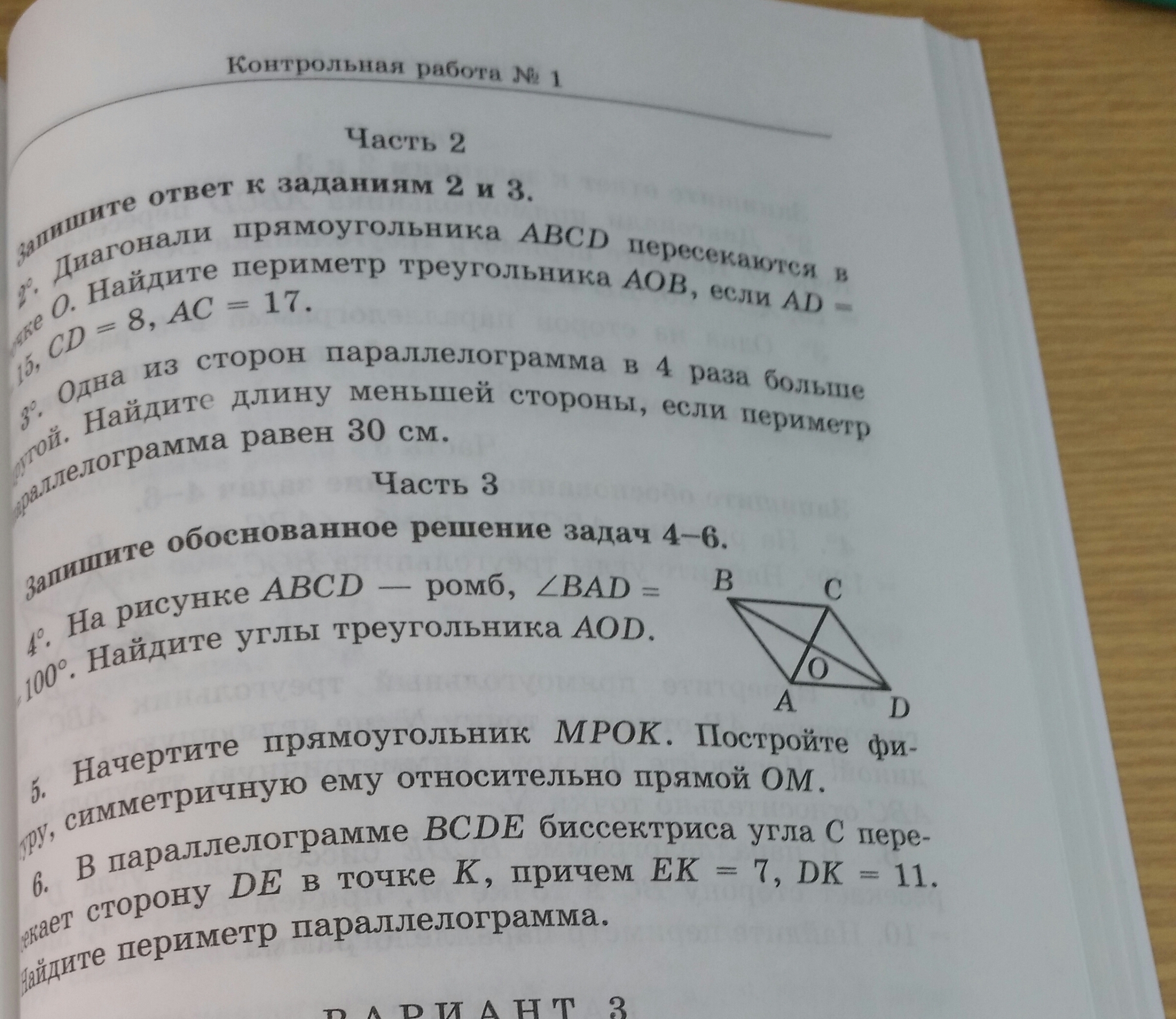 Только 4 задание. угол ОАД=1/2ВАД=50, угол О=90, тогда ОДА=180-90-50=40