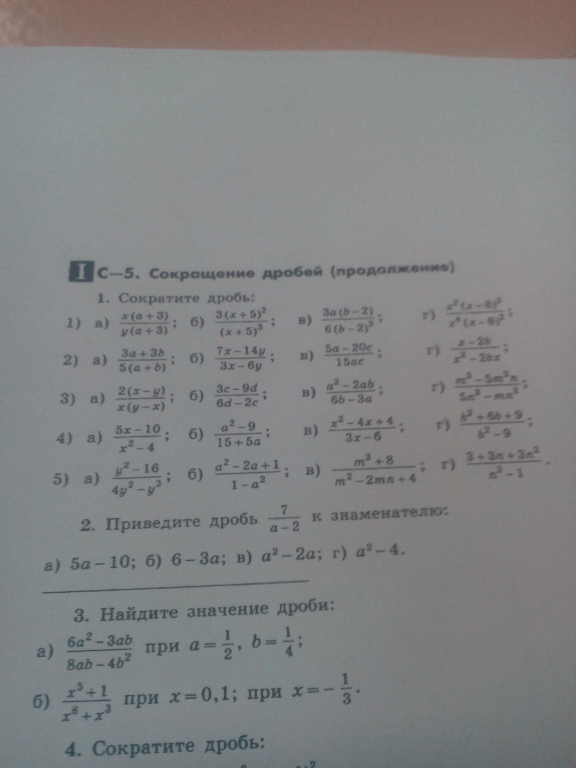 1) а) х/у б) 3/х+5 в) 3а/6б-12 г) х-8/х