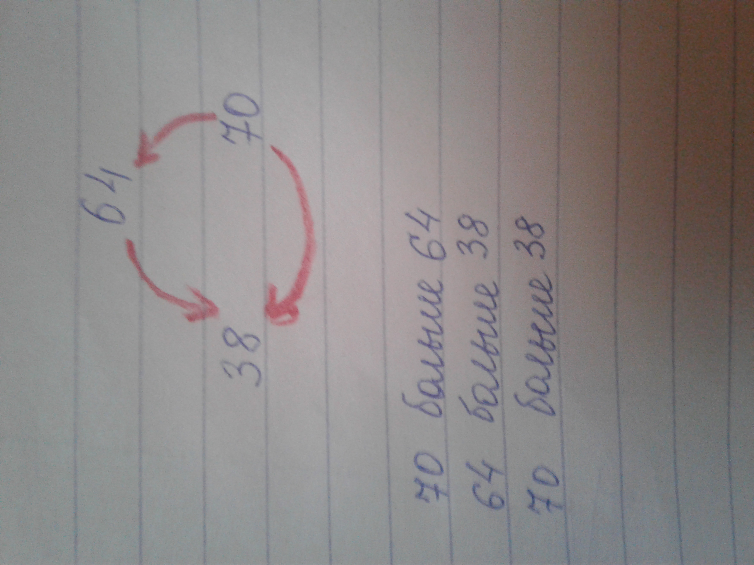 Сравни попарно числа 38 64 70 составь высказывание со словом больше и изобрази их с помощью стрелок
