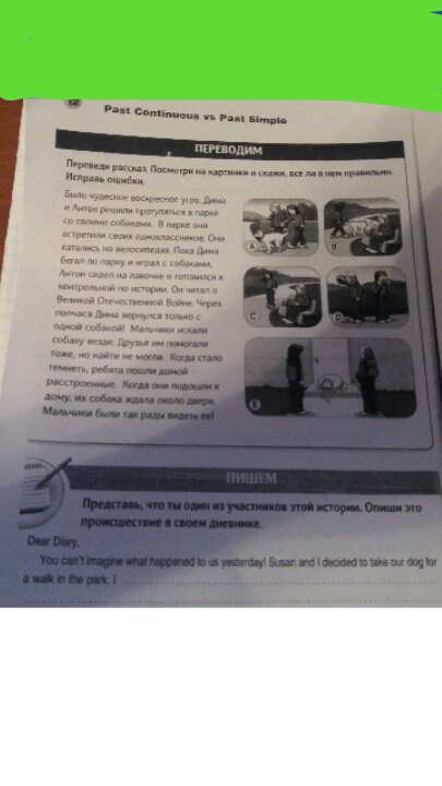 was a wonderful suday moning Dima and Anton decided to take a walk in the park with his dogs. In park they met thein classmates they rode bicycles. Dima is running through the park with dogs Anton sat on a bench and preparing fon cests oh history. He had read about. Creat pacritic woyhe. Chezer Dima returhed half on hour with only one dog! Boys ICS.
