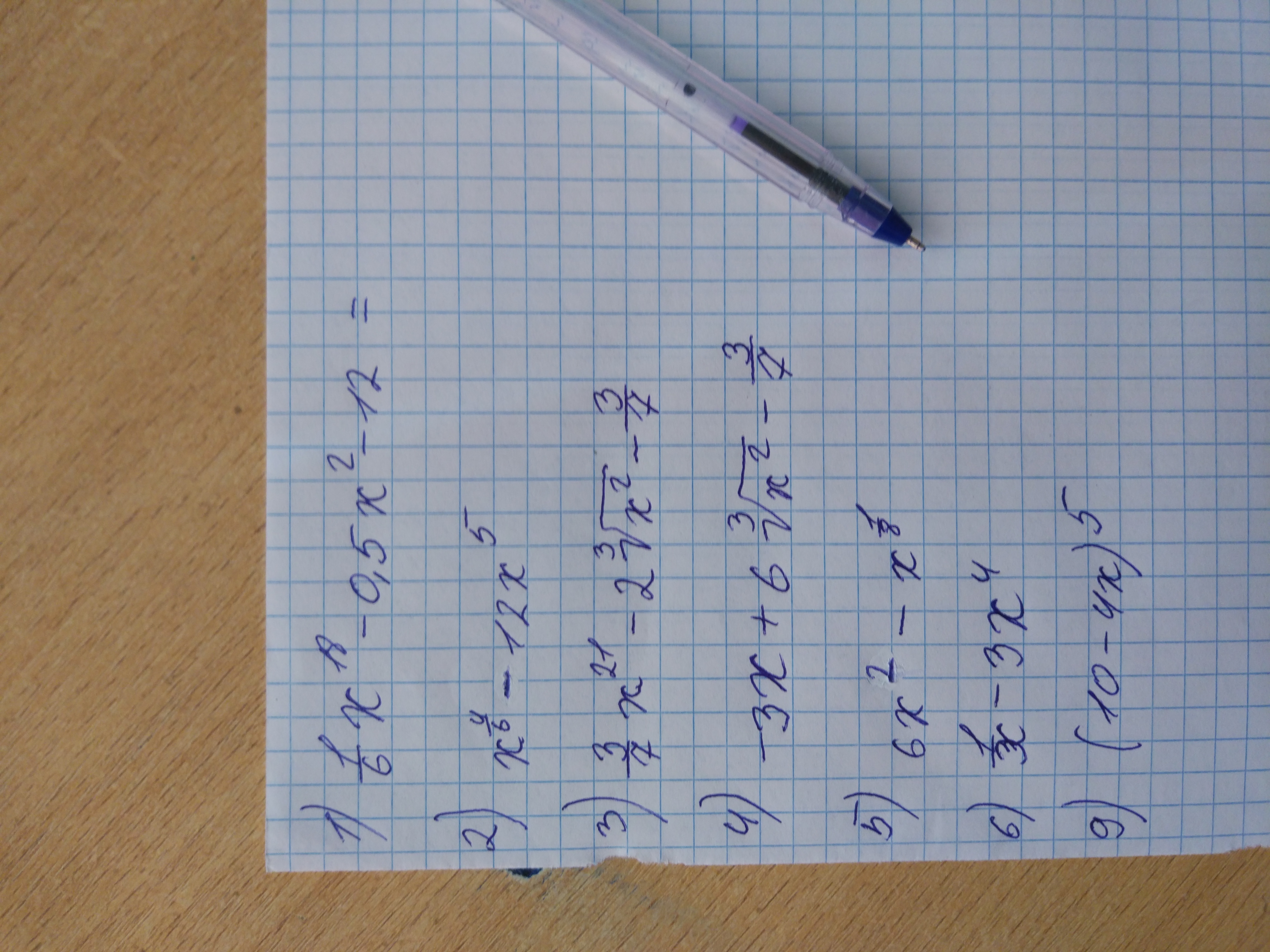 frac{2}{3 sqrt[3]{x} }-60 x^{4}](https://tex.z-dn.net/?f=+frac%7B4%7D%7B6%7D++x%5E%7B+-frac%7B1%7D%7B3%7D+%7D-12%2A5+x%5E%7B4%7D+%3D%0A+frac%7B2%7D%7B3+sqrt%5B3%5D%7Bx%7D+%7D-60+x%5E%7B4%7D+)
