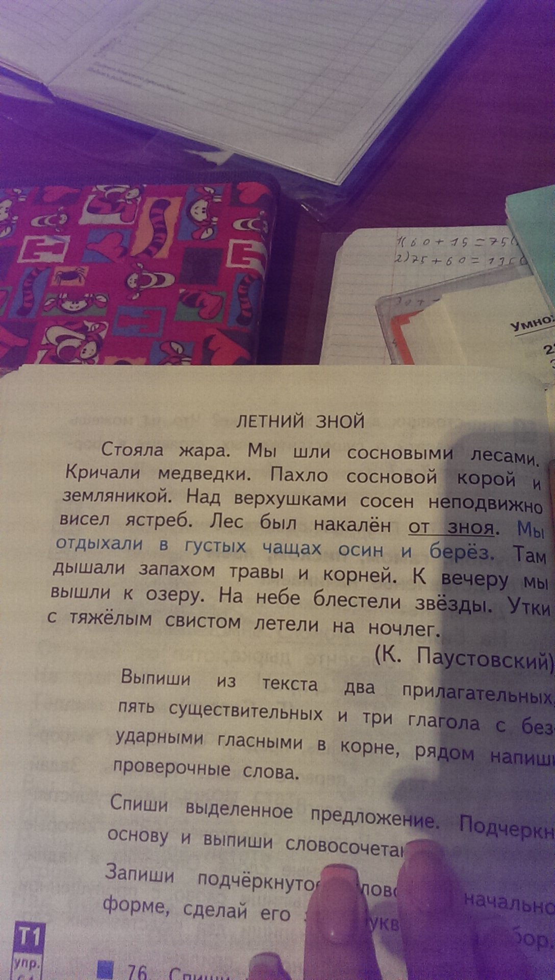 Выпиши из текста два прилагательных Пять существительных и три глагола с безударными гласными в корне рядом напиши проверочные слова