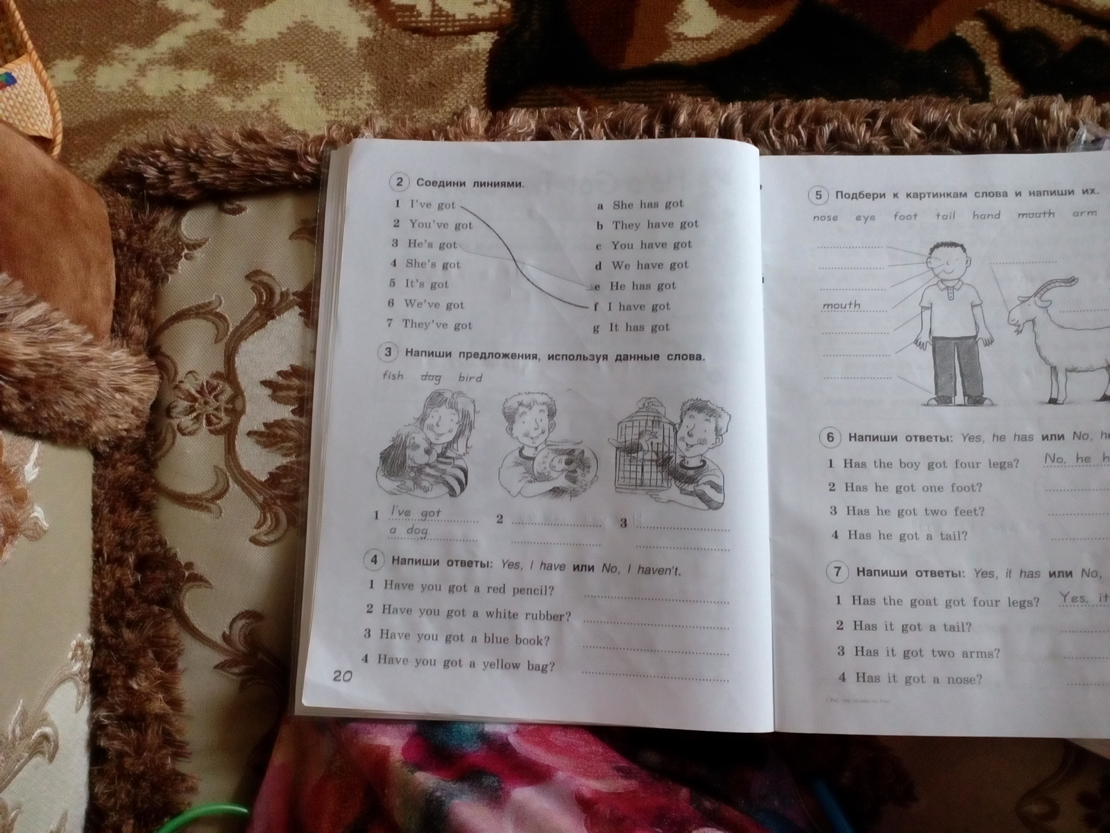 2)He has got a fish.