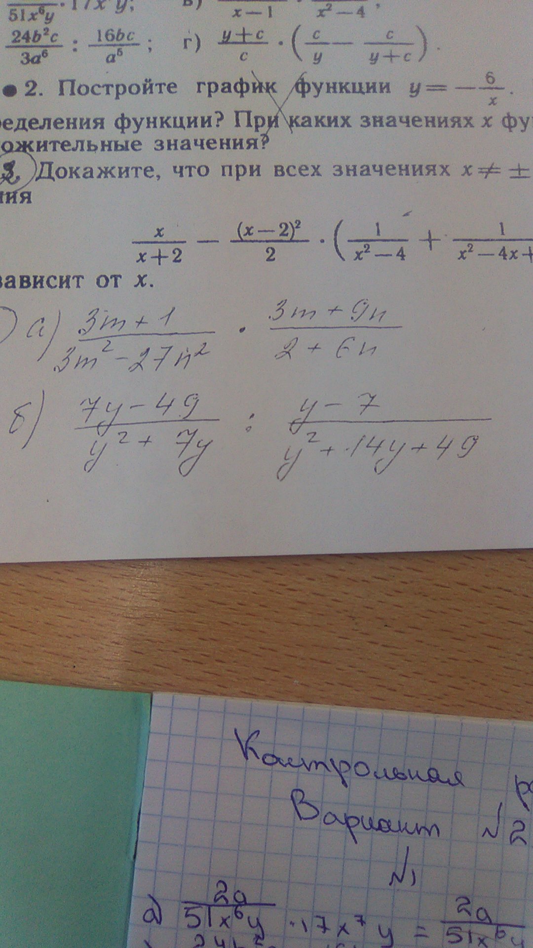 (3m+1)/(3m^2-27n^2) • (3m+9n)/(2+6m)=(3m+1)/(3(m-3n)(m+3n)) • (3(m+3n)/(2(1+3m)) = 1/(m-3n)• 1/2 = 1/(2m-6n)