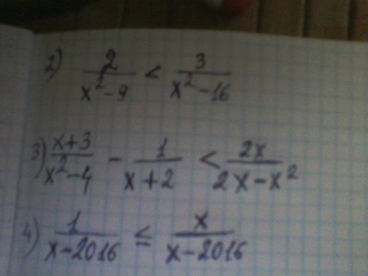 4)1/(х - 2016) ≤ х/(х - 2016)