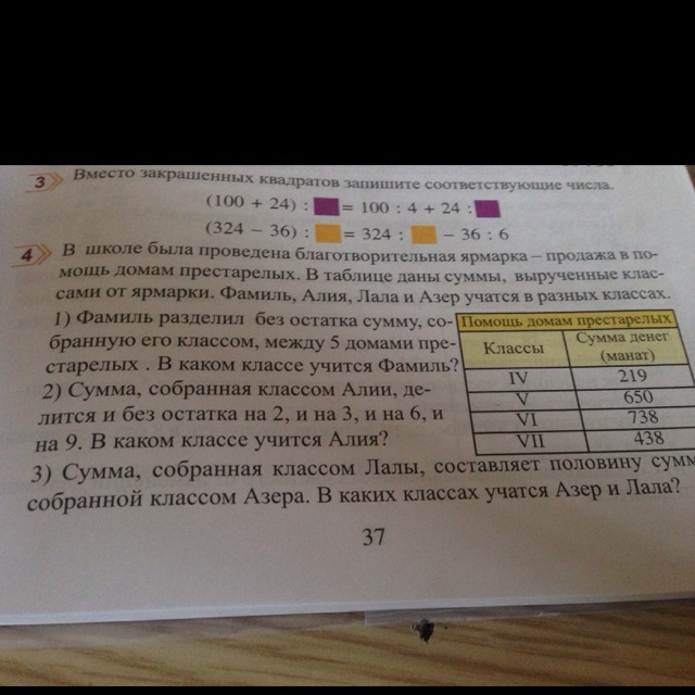 3)Лала учится в IV классе, половина суммы Азера это 219р (438:2=219)