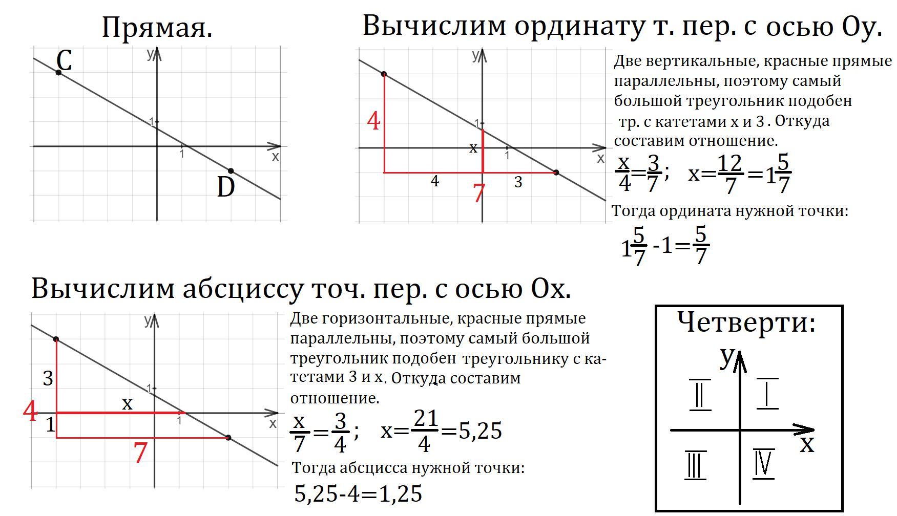 которых эта прямая пересекает ось Ох и ось Оу .№2 В каких координатных четвертях расположены точки: А ( -87; 89); В (3,5; 2) С ( 0,1; -0,001); D ( -1,25; -3,48)?
