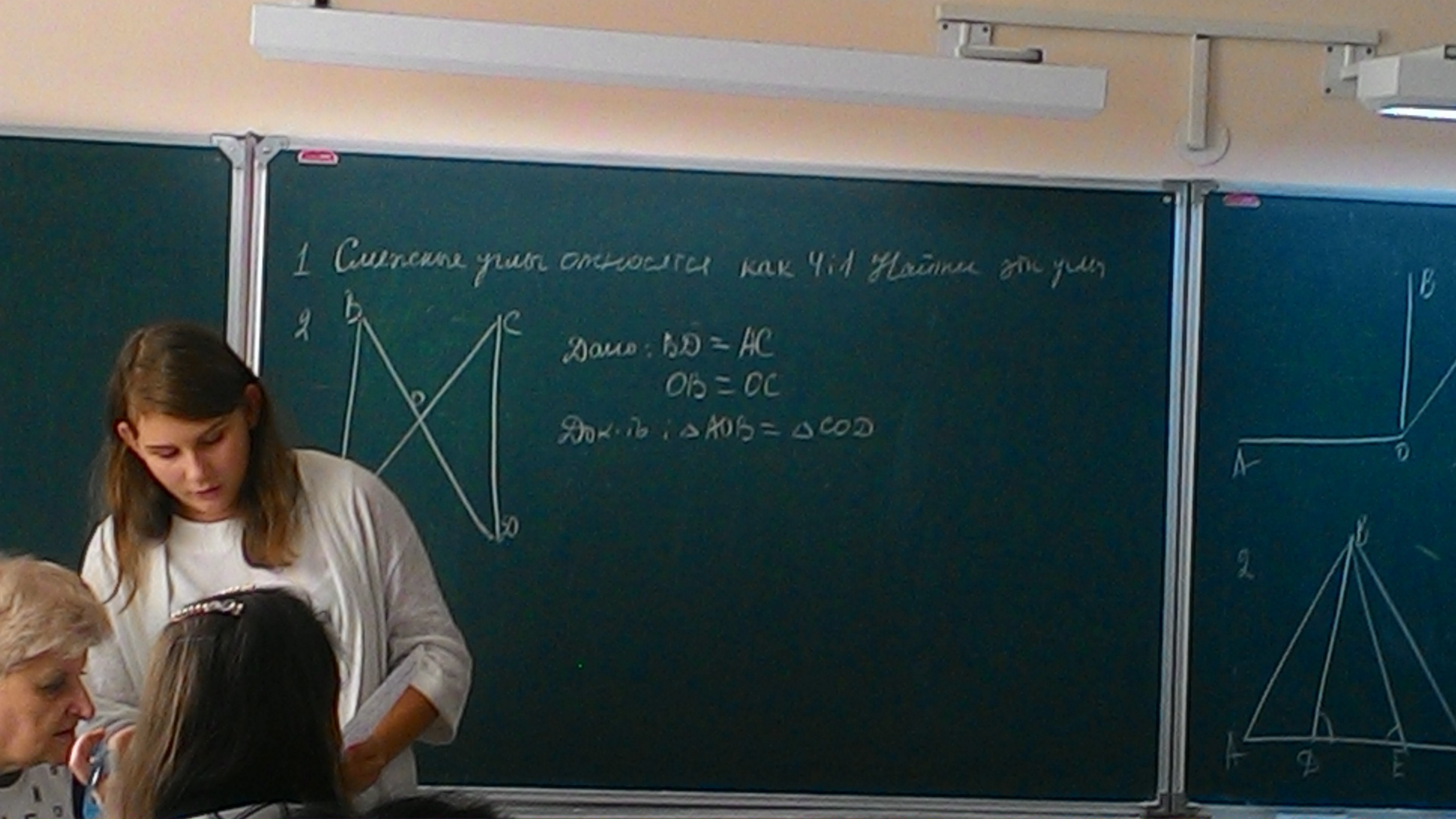 отсюда следует что эти треугольники равны по двум сторонам углу между ними