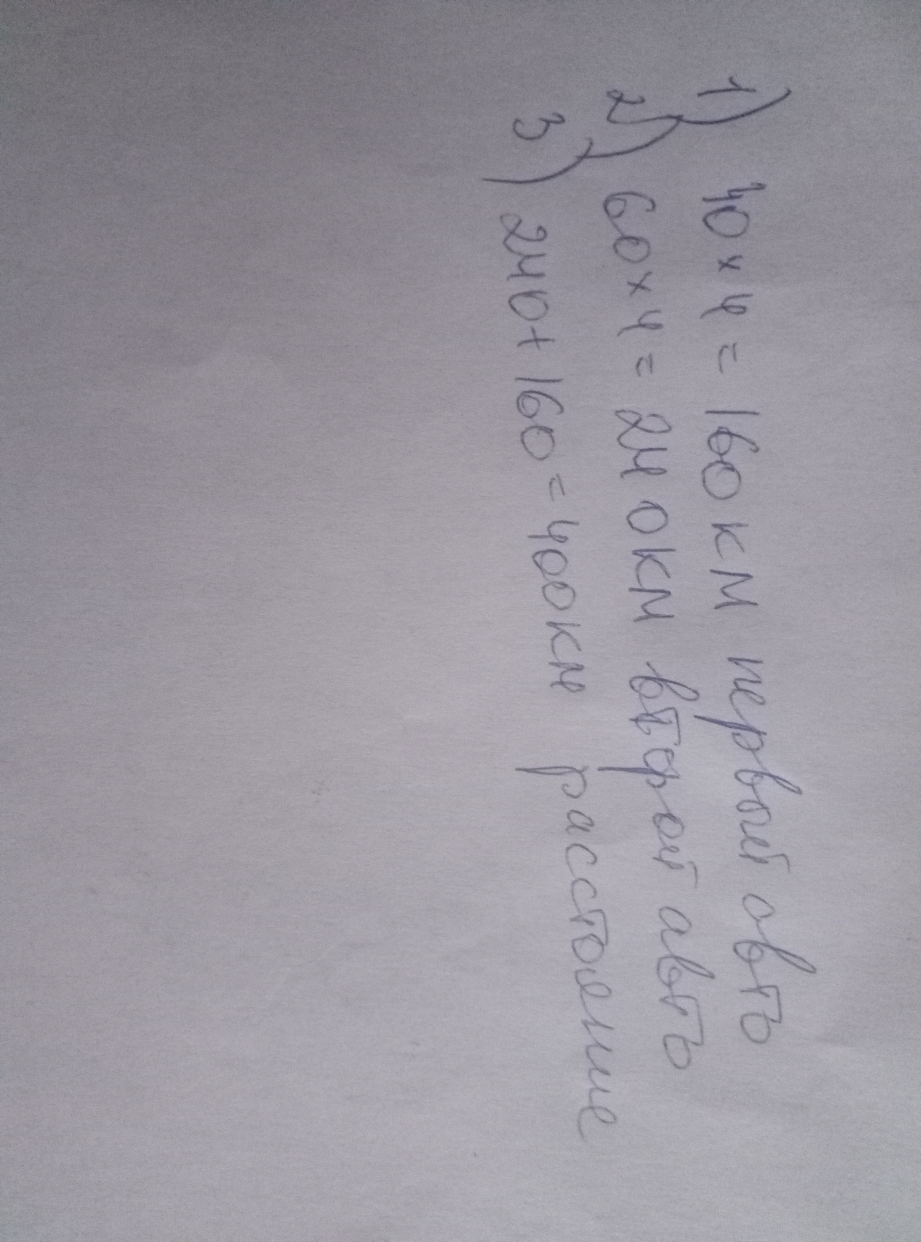 3 действия. Км первого авто,км второго авто и складываем их км.