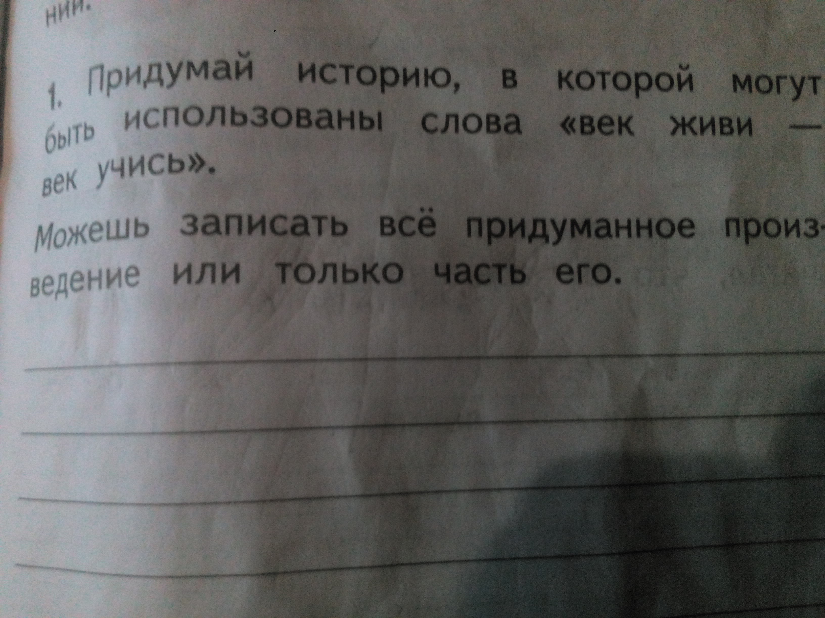 Например: В некотором царстве в некотором государстве жил крестьянин был у него сын который всегда переживал когда у него что-то не получалось и крестьянин всегда ему говорил Век живи век учись