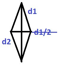 Алгоритм. Чертим d1, делим по полам, Строим перпендикуляр. Откладываем +/- d2. Соединяем вершины.