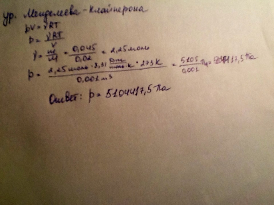 Решение во вложении. Дано писать уж не стала, действуем по уравнению Менделеева-Клайперона.