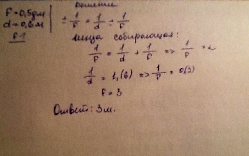 Главное фокусное расстояние двояковыпуклой линзы 50 см. Предмет высотой 1, 2 см. помещен на расстоянии 60 см. от линзы . Где и какой высоты изображение получится ?