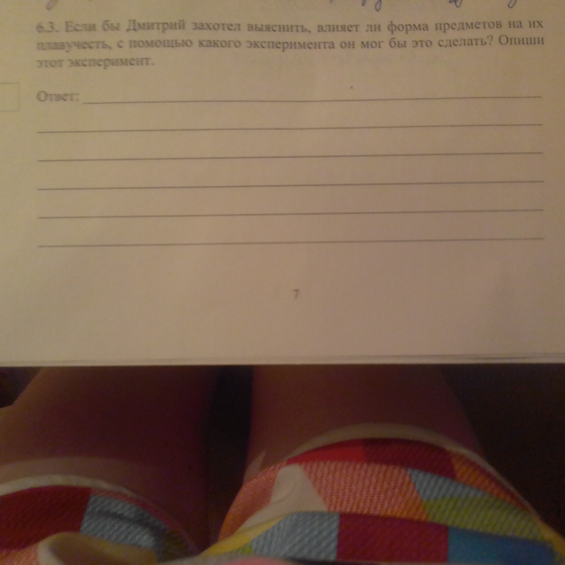 В твоём случае я бы описал так:Можно взять например пустую плотно закрытую бутылку набрал полную ванну воды и если бутылка всплывает ккратко вода выталкивает предмет предмет вытесняет столько то воды железо тяжолое по этому тонет
