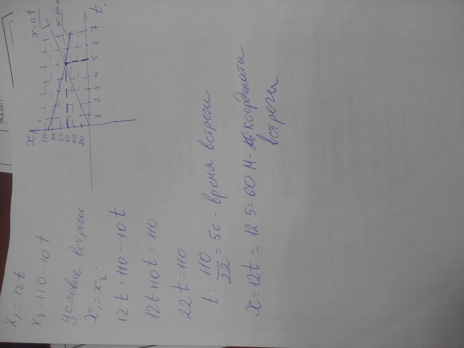 даны уравнения движения двух тел Х1=12t Х2=110-10t постройте график решения этих тел и определите место и время их встречи графические и аналитические
