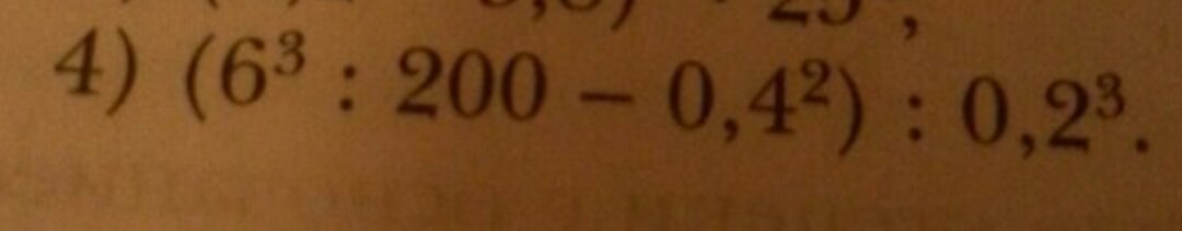 помогите с примером Сколько будет( 6 в кубе : 200 -0,4 в четвертой степени ):0,2 в кубе