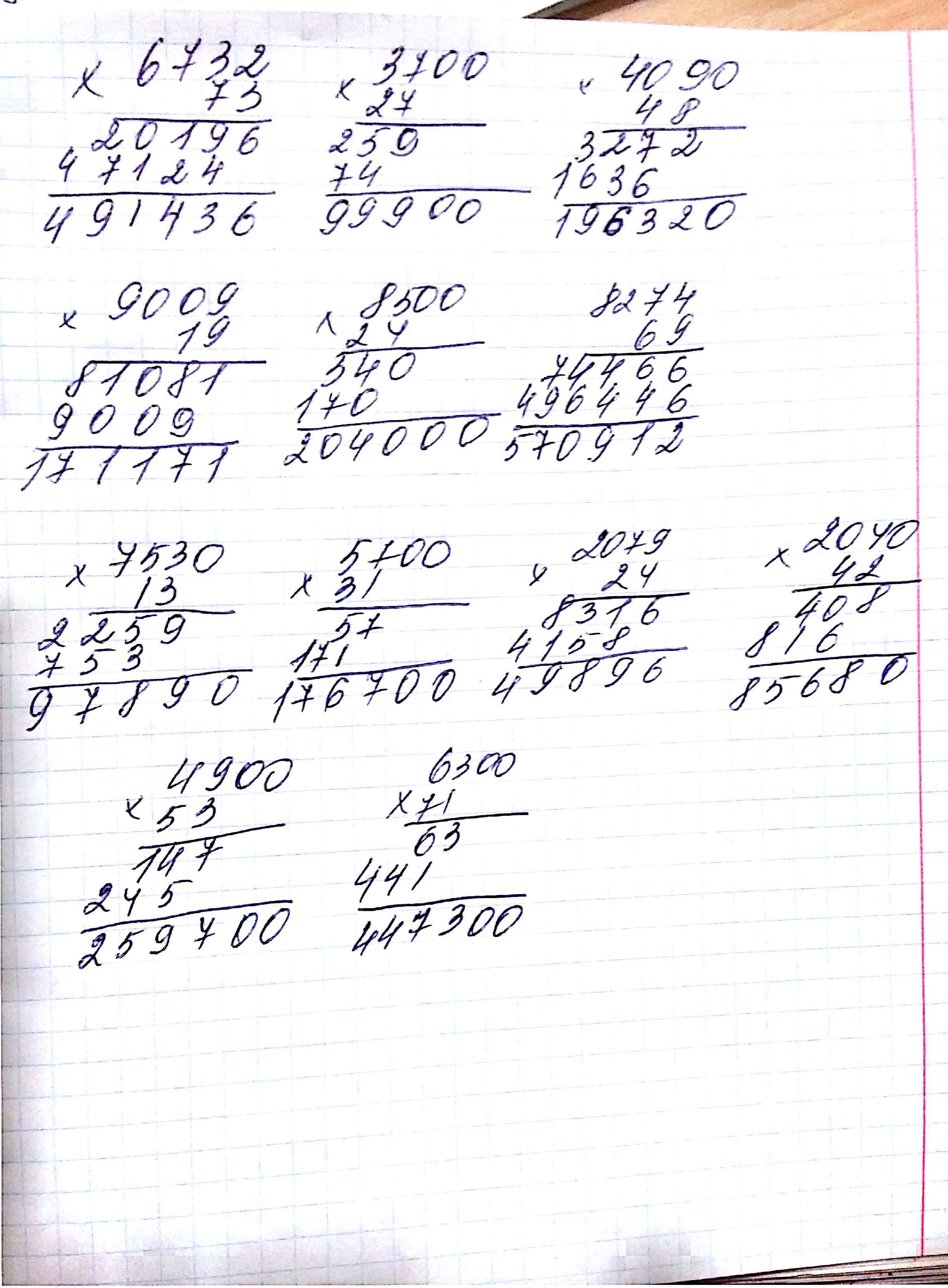 Выполни умножение в столбик с объяснением..б) 6732*73 3700*27 4090*48 9009*19 8500*24 8274*69
