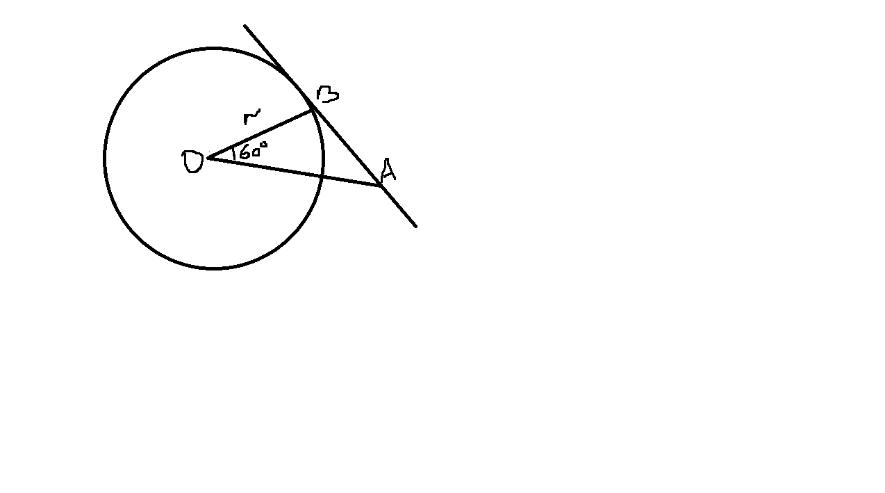 Прямая АB касается окружности с центром О и радиуса r в точке В. Нужно найти АВ, если угол АОВ=60 градусов, r=6см.