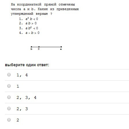 Ответ: 1, 4. На будущее, просто подставь значения в переменные, в данном случае я брал а = 3, б = -1.