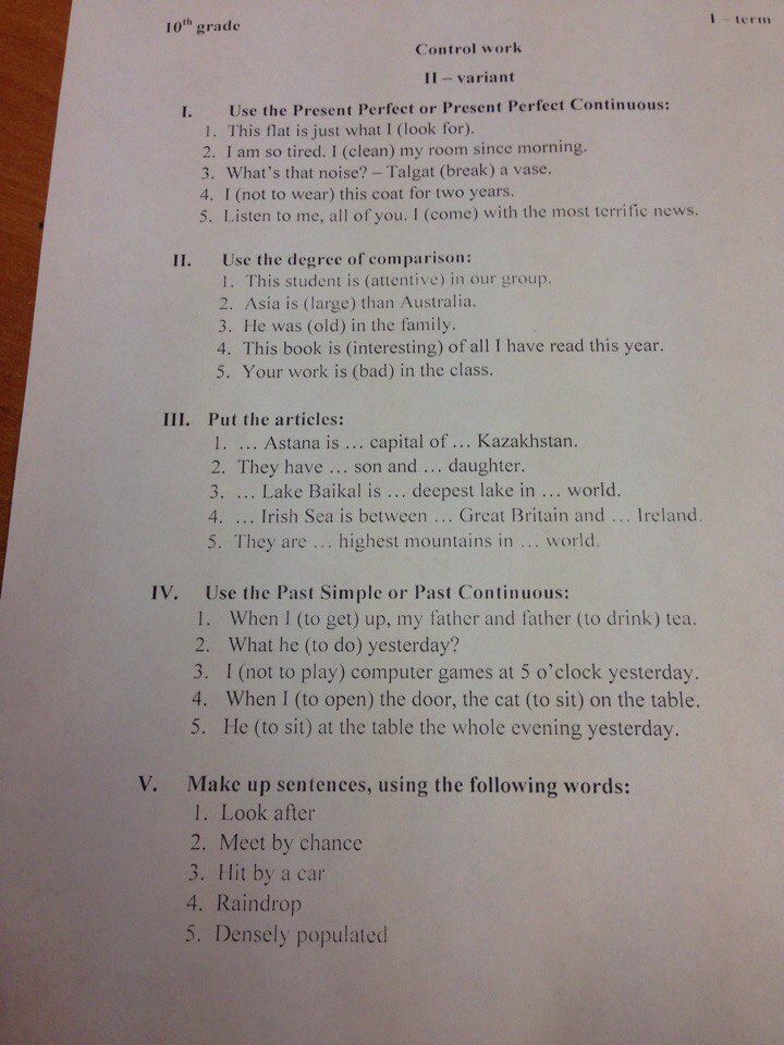 IV) 1.got up, were drinking tea