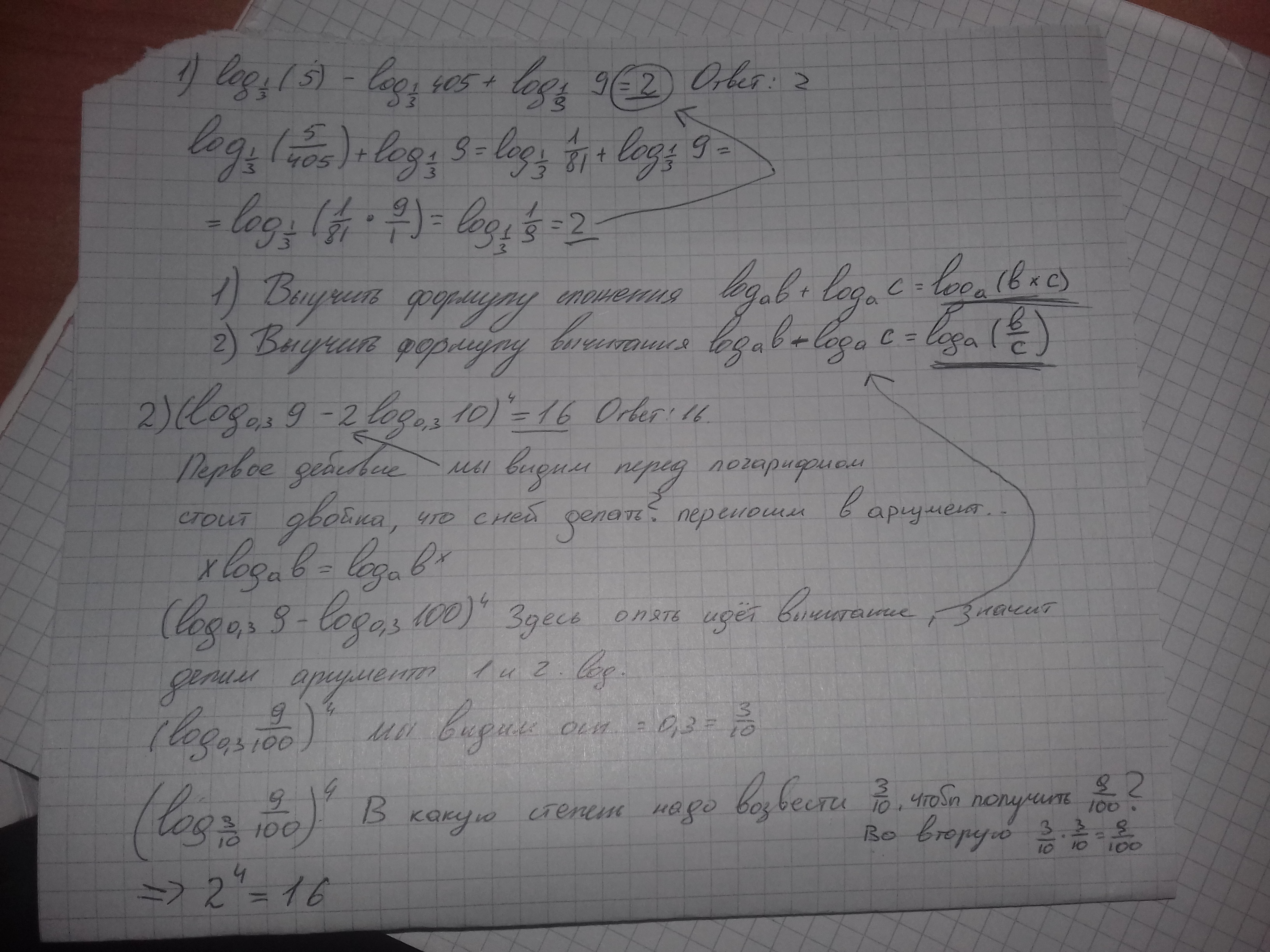 Первые два с объяснением есть. смотри фотографии в приложении.. третье задание я и так и сяк вертел.. оно получается но число такое будет не красивое примерно 0.7156... что то не правильно в задании скорее всего неправильно записано основание.. и скорее всего там было основание 3 или 1/3.. тогда корень из 3 мы представляем как 3 в степени 1/2 потом переносим 1/2 перед логарифмом... и получаем все красивенько... написал пару вариаций на всякий случай...